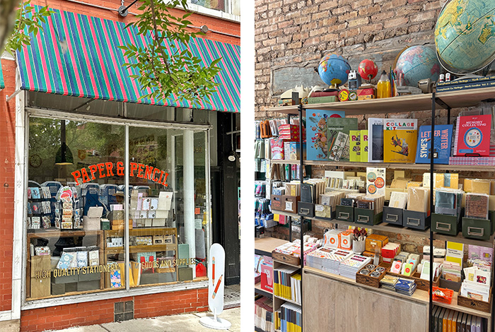 Paper & Pencil stocks a wide array of high-quality stationery goods and supplies from around the world including a curated selection of writing tools and journaling supplies from Japan, Taiwan, and Europe, alongside paper goods from independent artists, makers, and brands in the United States. The shop aesthetic is inspired by memories of a vintage classroom and the walls and shelves are adorned with maps, vintage flashcards, globes, encyclopedias, books, and school supplies.