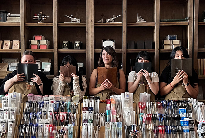 「トラベラーズノートは、Paper Plus Clothに欠かせない、特別な存在です。ブルーエディションは、私が初めて手にした革のノートでした。そのノートに込められていた旅や創造性、未知の可能性といった精神が、そのまま今の店の雰囲気の源となっています。トラベラーズノートの自由度の高いカスタマイズ性は、店で開催するワークショップやミートアップの定番のテーマとして活躍しています。トラベラーズノートは、持つ人に内省の時間や冒険心、そして『ペンを紙に走らせる』というシンプルな喜びをもたらしてくれます。今も変わらず、お店とスタッフにとって一番のお気に入りです」