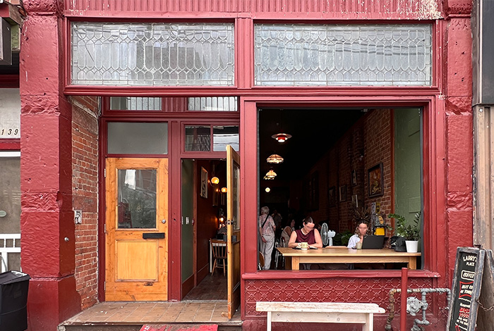 Our go-to Parkdale café for a delicious coffee and a quick reset, with espresso from their own micro-roastery in Prince Edward County. The butter tarts – made from a family recipe – are incredible; arrive early or order ahead because they sell out fast. Settle into the retro vibe for a few minutes before wandering back along Queen West.